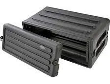 We use 10u, 8u, 6u, 4u or 3u racks - SKB (rolling or standard), ATA, Studio Wood or Metal