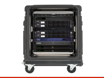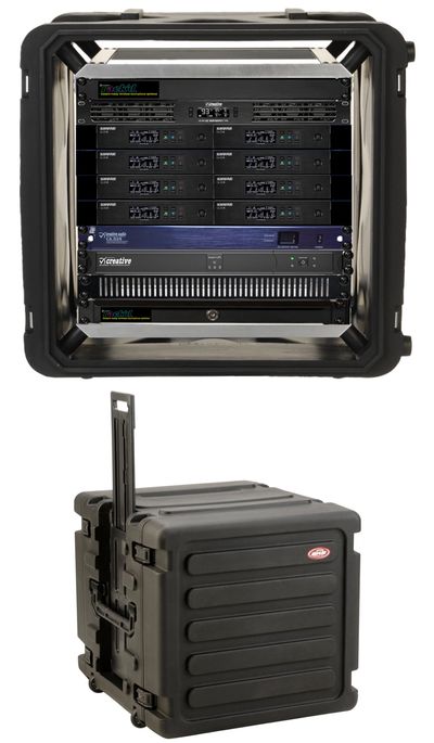 We use 20u, 16u, 14u, 12u, 10u, 8u, 6u, or 4u shock racks to provide extra protection on the road- SKB (desk or floor) and ATA style (rolling)